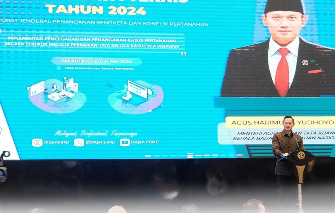 Nasional-BM.Com_Menteri Agraria dan Tata Ruang/Kepala Badan Pertanahan Nasional (ATR/BPN), Agus Harimurti Yudhoyono (AHY) membuka Rapat Kerja Teknis (Rakernis) Direktorat Jenderal Penanganan Sengketa dan Konflik Pertanahan (Ditjen PSKP) Tahun 2024 yang berlangsung di Hotel Grand Mercure Jakarta Kemayoran, Rabu (29/05/2024). Rakernis tahun ini mengusung tema “Implementasi Pencegahan dan Penanganan Kasus Pertanahan secara Terukur Melalui Perbaikan Tata Kelola Kasus Pertanahan”.
