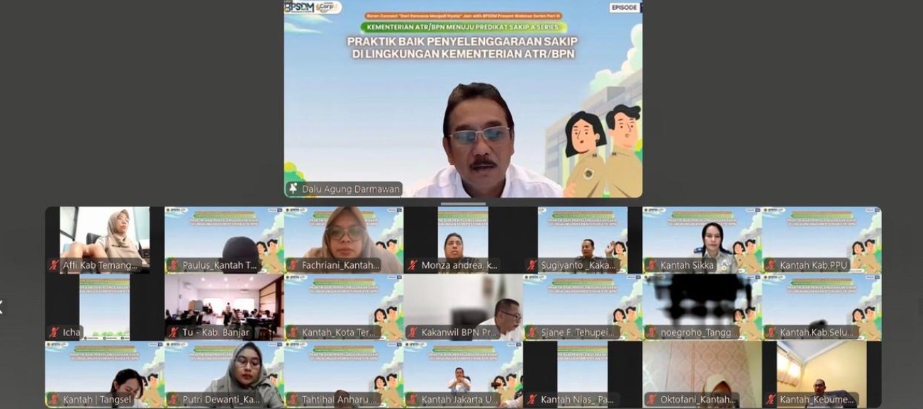 Webinar series keempat ini dimoderatori oleh Kepala Subbagian Pemantauan pada Biro Perencanaan dan Kerja Sama, Nugroho Dwi Rinaryanta. Peserta pada webinar ini meliputi pegawai Kementerian ATR/BPN dari berbagai unit kerja, baik pusat maupun daerah. (MW/RT). Red