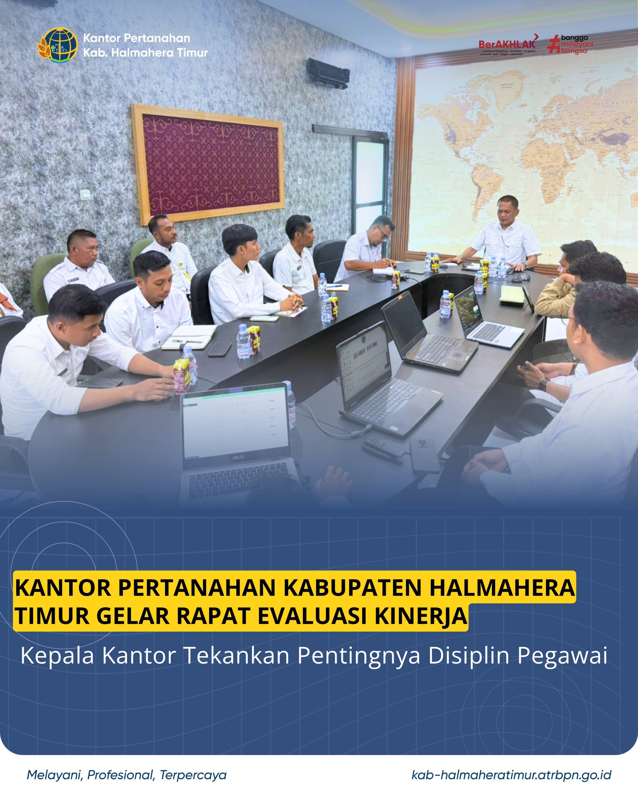 Kepala Kantor Pertanahan Kabupaten Halmahera Timur menggelar rapat evaluasi kinerja bersama para pejabat struktural maupun staf.