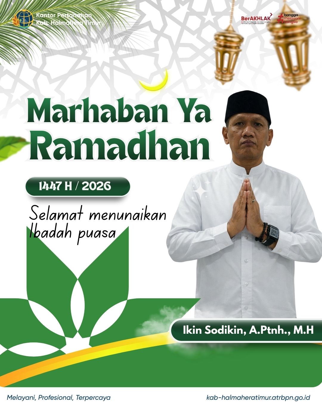 Halo #SobATRBPN Kepala Kantor Pertanahan Kabupaten Halmahera Timur Ikin Sodikin, A.Ptnh., M.H beserta jajaran mengucapkan Marhaban Ya Ramadhan 1 Ramadhan 1447 Hijriah. Jadikan bulan ini sebagai titik perubahan menuju pribadi yang lebih baik bagi kita semua. Amin.