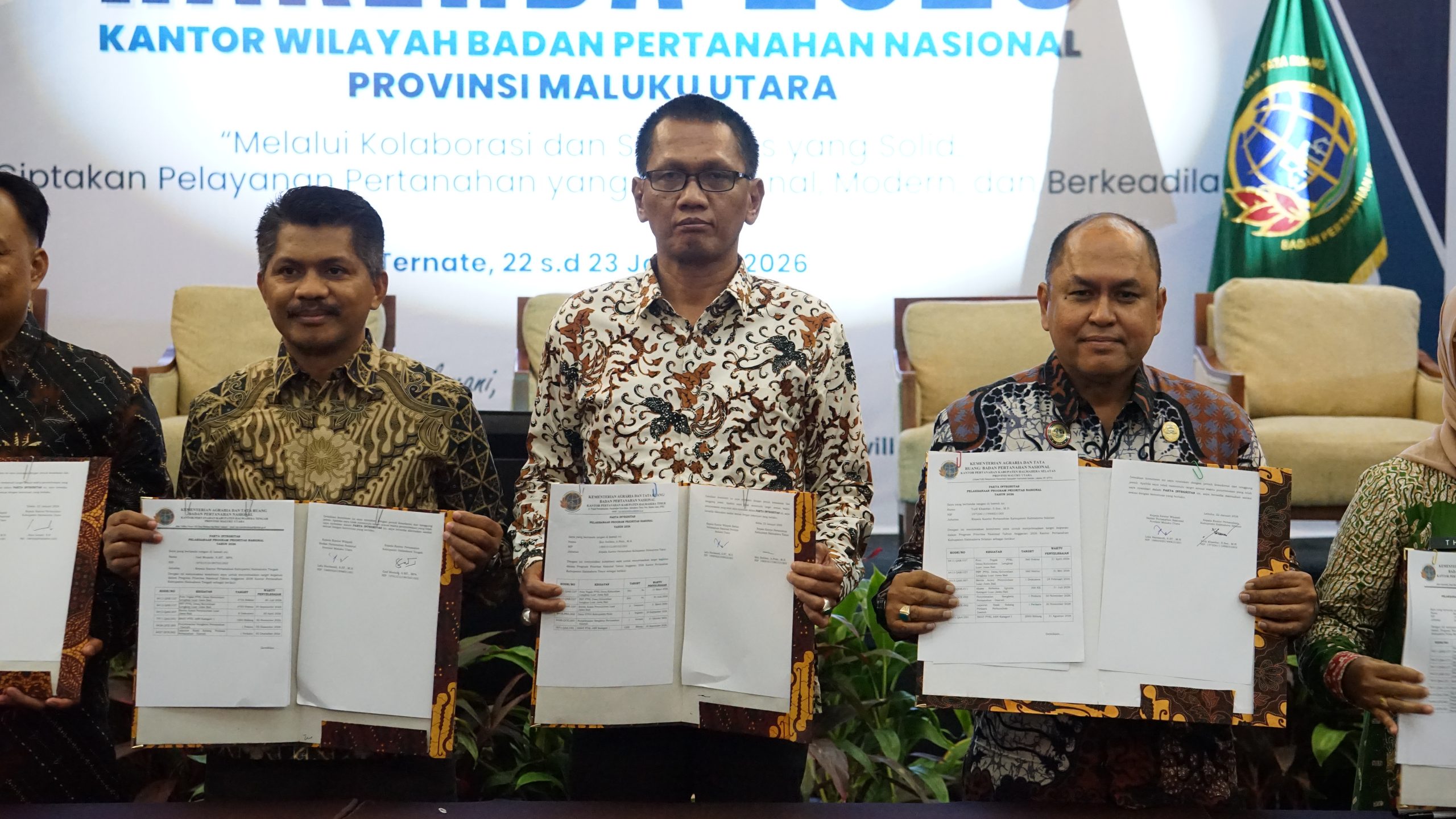 Halo #SobATRBPN Kantor Pertanahan Kabupaten Halmahera Timur menandatangani Pakta Integritas Kepala Kantor Pertanahan dan Kepala Kantor Wilayah BPN Provinsi Maluku Utara. Kegiatan ini dipimpin langsung oleh Bapak Kepala Kantor Wilayah BPN Provinsi Maluku Utara, Lalu Harisandi, S.ST., M.H. Kamis (22/01/2026)