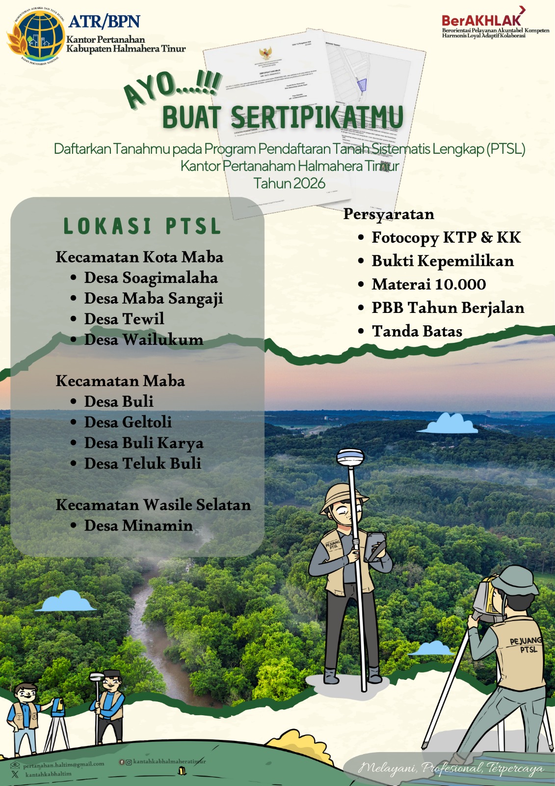 Pengumuman Pendaftaran Tanah Sistematis Lengkap Tahun 2026 Kabupaten Halmahera Timur