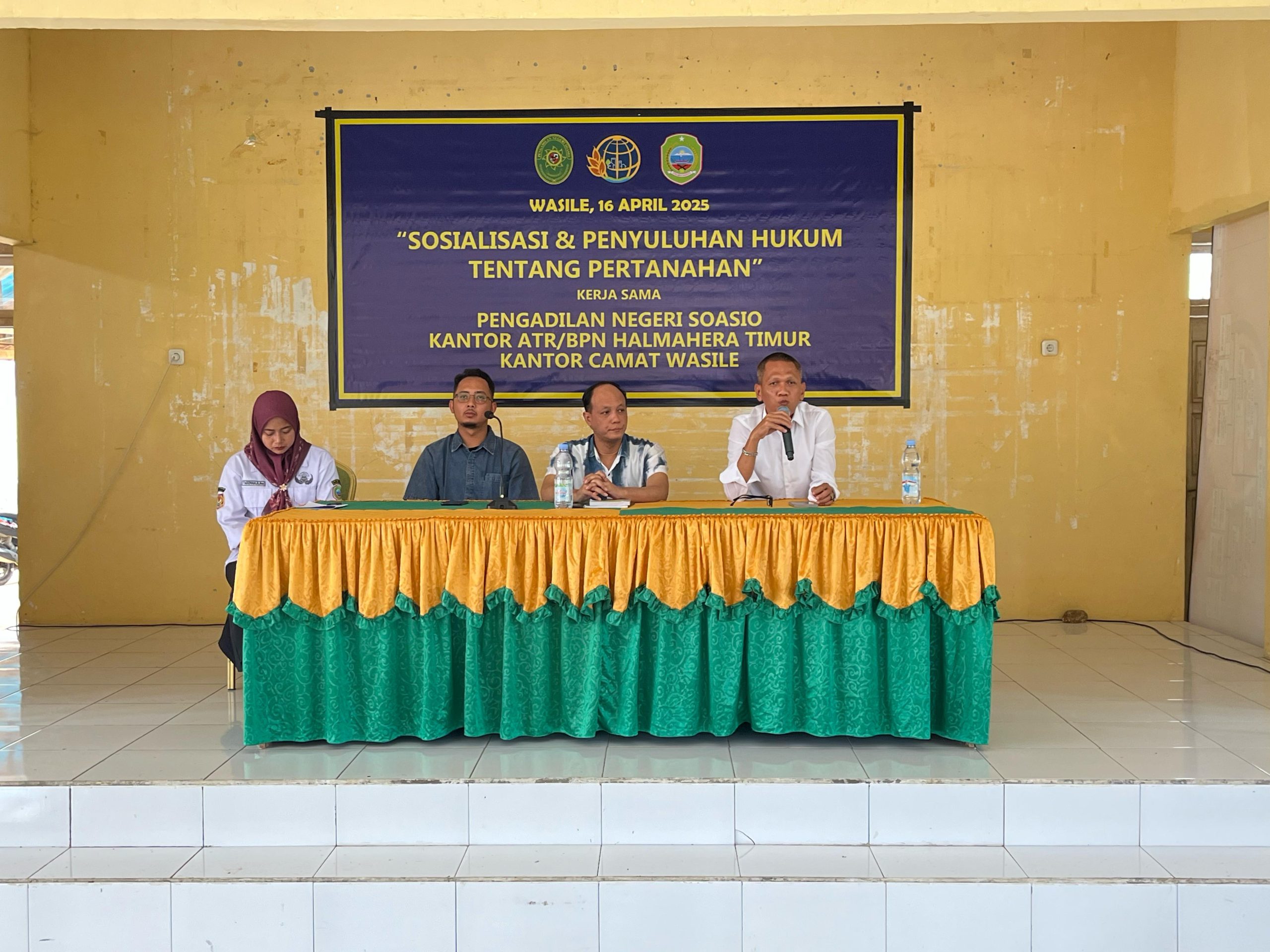 Haltim-BM.COM_Kantor Pertanahan Kabupaten Halmahera Timur mengikuti Sosialisasi dan Penyuluhan Hukum Pertanahan yang bekerjasama dengan Pengadilan Negara Soasio dan Kantor Camat Wasile di Kantor Camat Wasile (Rabu, 16/04/2025).