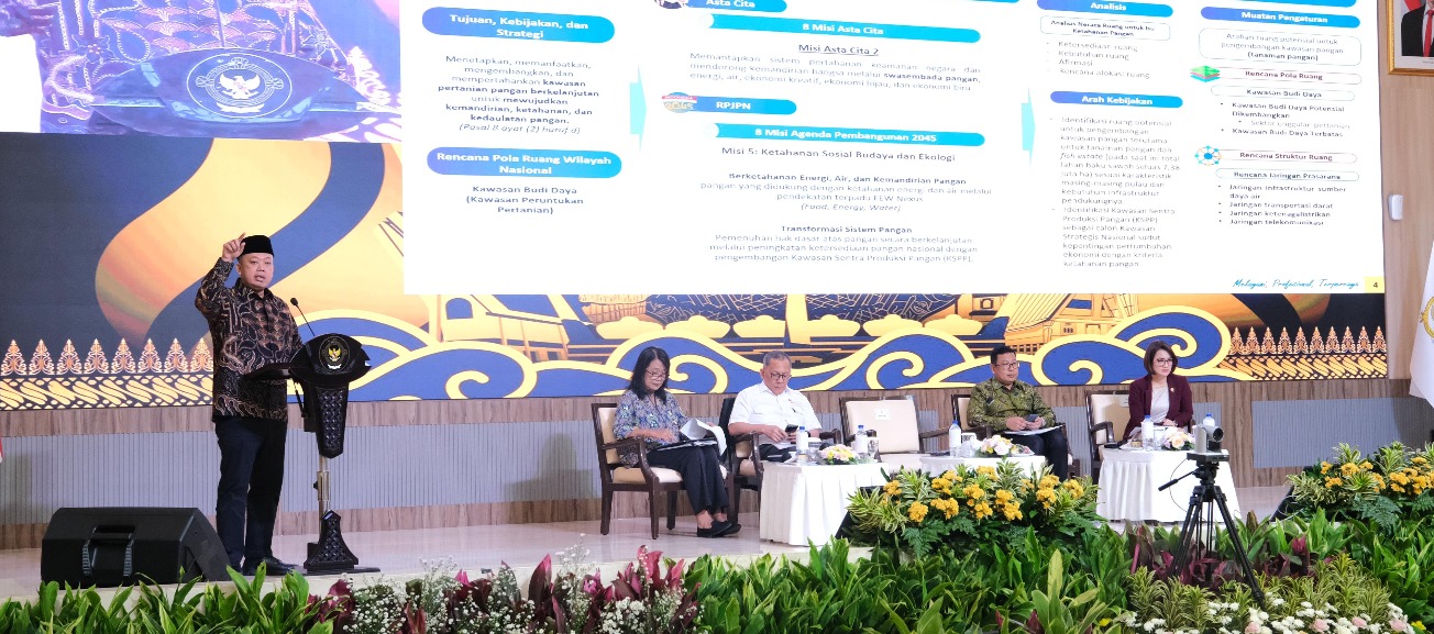Dalam paparannya, Menteri Nusron menjelaskan strategi Kementerian ATR/BPN mendukung ketahanan pangan, mulai dari perlindungan Lahan Pertanian Pangan Berkelanjutan (LP2B), penerapan skema Lahan Sawah yang Dilindungi (LSD), hingga optimalisasi tanah telantar untuk redistribusi kepada masyarakat. Berdasarkan data Kementerian ATR/BPN, penerapan LSD terbukti menekan alih fungsi lahan sawah secara signifikan.
