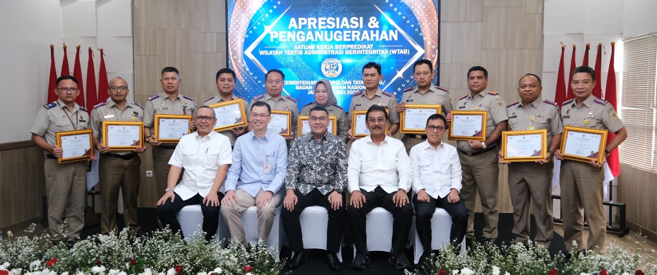 Nasional-BM.COM_Wakil Menteri Agraria dan Tata Ruang/Wakil Kepala Badan Pertanahan Nasional (Wamen ATR/Waka BPN), Ossy Dermawan, memberikan penghargaan Wilayah Tertib Administrasi Berintegritas (WTAB) ke 11 Kantor Pertanahan. Dalam sambutannya, ia menegaskan bahwa penghargaan ini bukan semata seremoni administratif, tetapi bentuk nyata komitmen dan arah masa depan birokrasi Kementerian ATR/BPN yang bersih, akuntabel, melayani, dan berintegritas.