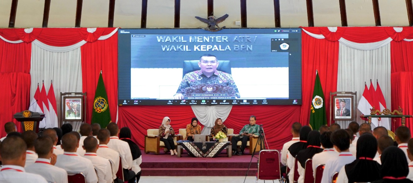 “STPN ini bukan sekadar proses menuntut ilmu, melainkan juga pembentukan karakter dan juga kepemimpinan, serta menjadi panggilan pengabdian kita kepada bangsa dan negara,” tutur Wamen ATR/Waka BPN secara daring kepada taruna baru STPN.