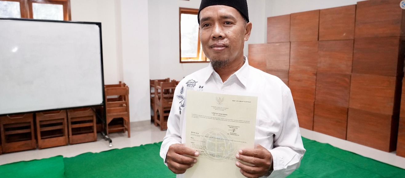 Haltim-BM.Com_Penyertipikatan tanah adalah hal penting yang kian hari semakin disadari oleh masyarakat Indonesia. Salah satunya Saiman, laki-laki kelahiran Kabupaten Kudus, yang pada Sabtu (08/03/2025) baru saja menerima sertipikat tanah wakaf dengan peruntukkan Makam Demangan. Ia berpendapat, penyertipikatan tanah wakaf penting agar tanah yang dikelola untuk kepentingan umat tidak disalahgunakan oleh pihak tak bertanggung jawab di waktu mendatang.